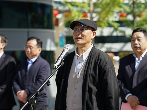 中国雕塑学会会长曾成钢发表致辞,他表示能以雕塑公园为契机,在城市格局中做贡献,非常荣幸。公共雕塑面对的是一个社会,是一个环境,一个城市。它对城市的发展和城市文化品质的提升起着越来越重要的作用。这些雕塑在郑州雕塑公园成功落成,感谢在此期间郑州市人民政府大力支持、工作班子尽心尽责。落成后群众对雕塑公园的评价很高很满意,这些都令人感到非常的欣慰。中国雕塑学会在10余年的时间里为6座城市打造了6大雕塑公园,我们总结经验提出了“芜湖模式”“温州精神”“郑州标准”。标准是最难的,因为标准是会随着时代的发展变化、提升,但我们不辱使命,在这样的情况下做得越来越好。最后他寄予厚望,希望郑州雕塑公园能够在世界上引领着公共艺术的发展,雕塑的目标应该是“标准看郑州”。
