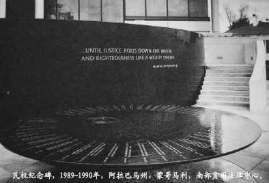 在“越南战争退伍军人纪念碑”获得成功之后,林璎被邀请创做了一系列其他纪念碑。她为阿拉巴马州蒙哥马利的南部贫困法律中心(Southern Poverty Law Center)创作了“民权纪念碑”(1989年完成)以及为耶鲁大学创作了“女性圆桌”(1992年完成)。随后,她拒绝了所有关于设计纪念碑的邀请,不想仅仅被归类为一位纪念碑艺术家。我们来看看林璎如何描述她的“民权纪念碑”,这很有意思。与越战纪念碑一样,这件作品也是惊人的缺乏情感。对于如此具有情感性主题的纪念碑来说,在接下来的纪念碑描述中,林璎的文风显得格外的干涩,这与哈特对于其越战纪念碑雕塑的描述形成了有趣的对比: