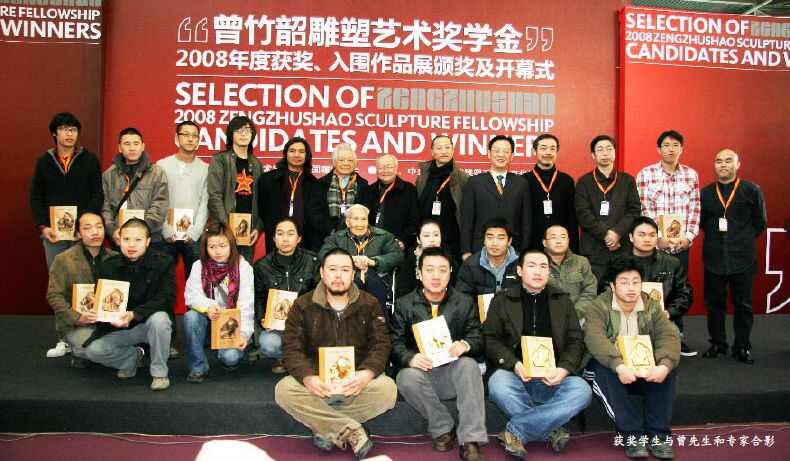 由中央美术学院、中国雕塑学会共同主办、中央美术学院雕塑系承办的“曾竹韶雕塑艺术奖学金”2008年度获奖及入围作品展开幕式11月30日上午在北京中国国际展览中心(新馆)隆重举行。开幕式上同时举行“曾竹韶雕塑艺术奖学金”颁奖仪式。以该奖学金名字命名的中国雕塑界前辈、百岁老人曾竹韶先生专程出席了开幕式并亲自为获得“曾竹韶奖”的5位青年艺术家颁发证书和奖金,同时开幕的还有中央美术学院雕塑系优秀学生作品展。开幕式由雕塑系常务副主任吕品昌教授主持,中央美院党委副书记孙红培、中国雕塑学会会长曾成钢、著名雕塑家盛杨先生、本届“奖学金”赞助人单大伟、以及隋建国等分别致辞,著名雕塑家钱绍武、吴为山、时宜、赵瑞英、马改户等和在京的雕塑界同行,来自不同院校的参展和获奖青年雕塑家们齐聚一堂,气氛融洽、热烈。