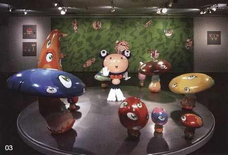 展览中的一些图像是晦暗的、令人惊恐的,或是充满了未来主义的幻想。一些评论家认为第二次世界大战和广岛的原子弹爆炸对艺术家的创作有特殊的影响,例如头骨变形成为蘑菇云,这暗示了男性形象的无能(身体和精神上都被原子弹的辐射所影响)。艺术家却解释道:“我采用蘑菇的图像是受到大政时代的艺术家竹久梦二的启发,因为蘑菇的图案是非常可爱的,我不擅长绘画,我不能把它画的很具体,只是把他们设计的很简单明了,我一遍一遍的设计这种图象,直到有一天,有人告诉我说,村上隆,你的灵感来源于原子弹爆炸吧,老实的说我并不这么认为,如果我能够接近或是与这段令人悲伤的记忆建立联系,这将是一次有趣的尝试,这就是为什么Super Nova (1999)这件作品的产生,当我在画画,我在想象蘑菇云的景象。”