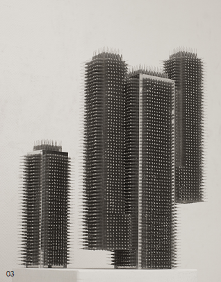 许毅博同学的作品《楼市》(2005级本科五年级,获鲁迅美术学院雕塑创造奖三等奖)以高耸而危险的作品面貌,映射出了心理和社会的双重现实境况,制作精良、表达准确。重复的细节烘托出陌生而思辩的整体效果,并以发散性的内在能量完成了对于象征性的表达,明晰出作者的社会态度。