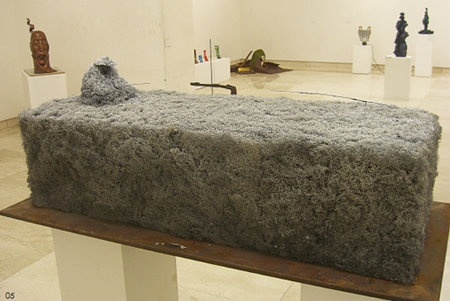 于文超同学的作品《归》(2006级本科四年级,获鲁迅美术学院雕塑创造奖三等奖) 直接的描绘制作方式体现出了作者对于材料的偏爱和把握能力,通过将现实的真实向艺术中真实转化,赋予了现实物品以新的内涵、新的视觉效果。注视、记录了过程的复杂性,初显出作者对于创作之路的坚定与清晰。
